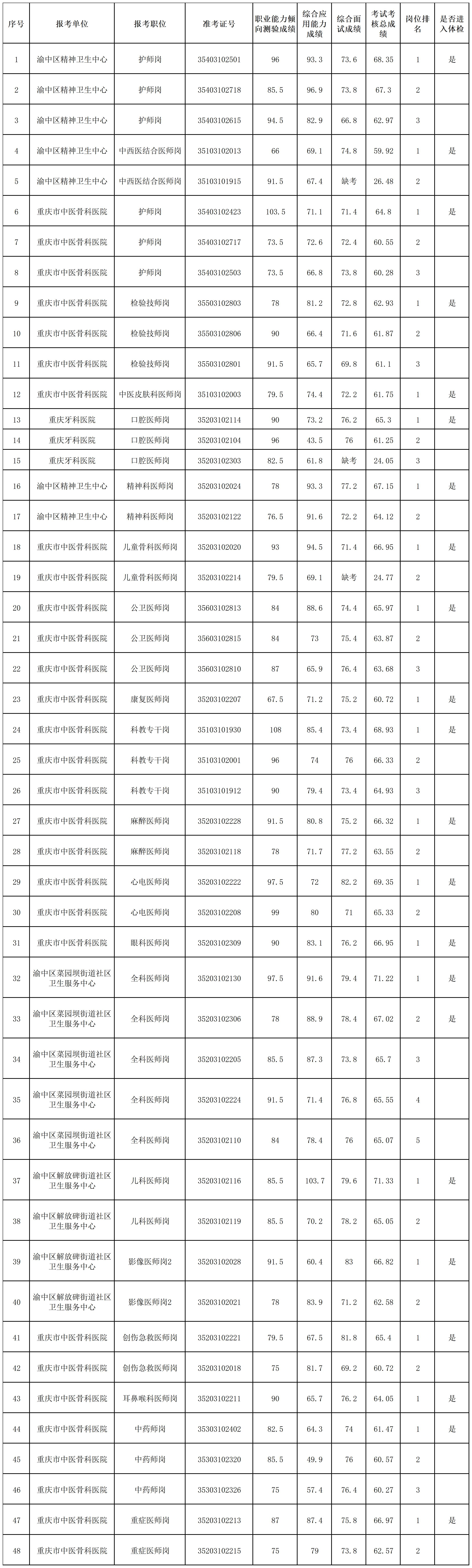 原標(biāo)題:重慶市渝中區(qū)事業(yè)單位2023年第一季度公開招聘工作人員(衛(wèi)生類崗位)進(jìn)入面試人員成績公示表