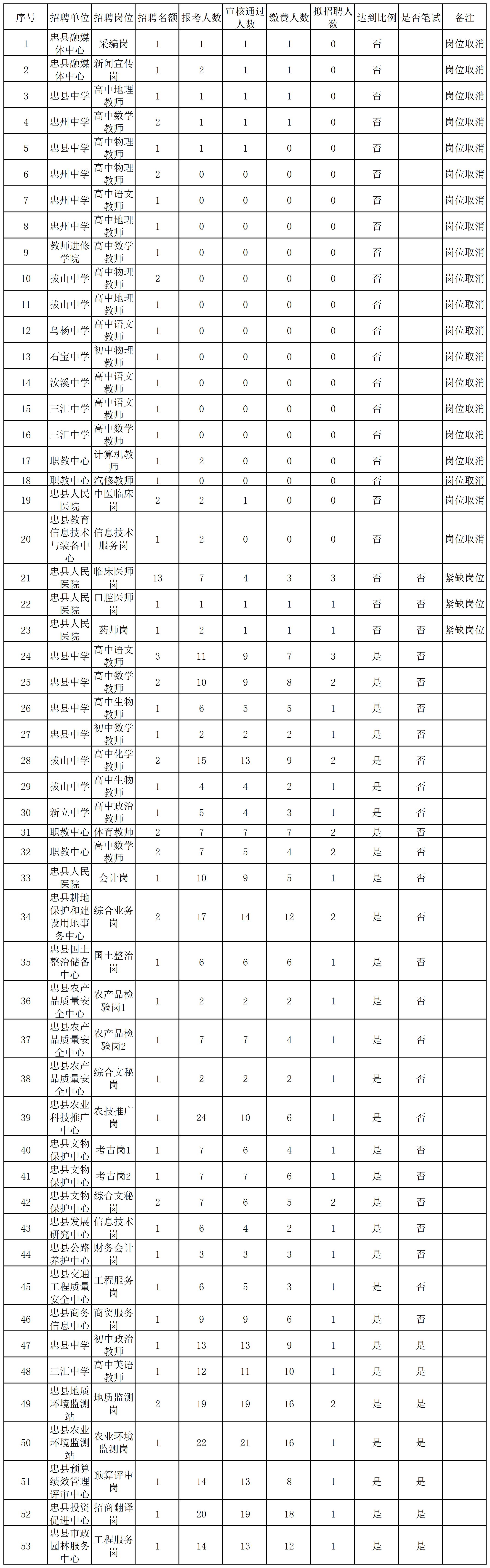 原標題:忠縣2023年二季度考核招聘崗位報名人數情況公布