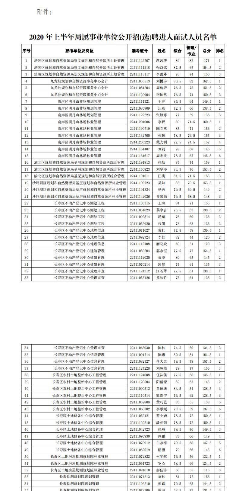 原標題:關于公布2020年上半年重慶市規(guī)劃和自然資源局所屬事業(yè)單位公開招(選)聘進入面試人員名單的通知