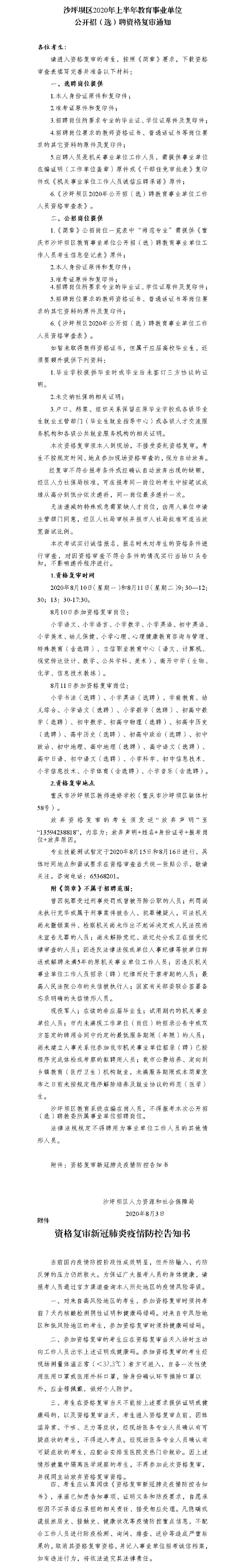 【導語】2020重慶沙坪壩教育事業單位招聘資格復審通知公告現已發布,新公教育 為廣大考生整理此次公告內容如下,望各位考生及時查看。新公教 育為報考重慶事業單位考生提供備考資料、輔導用書、真題講義、筆試課程等內容, 歡迎各位考生加入備考QQ群 663261430一起學習!