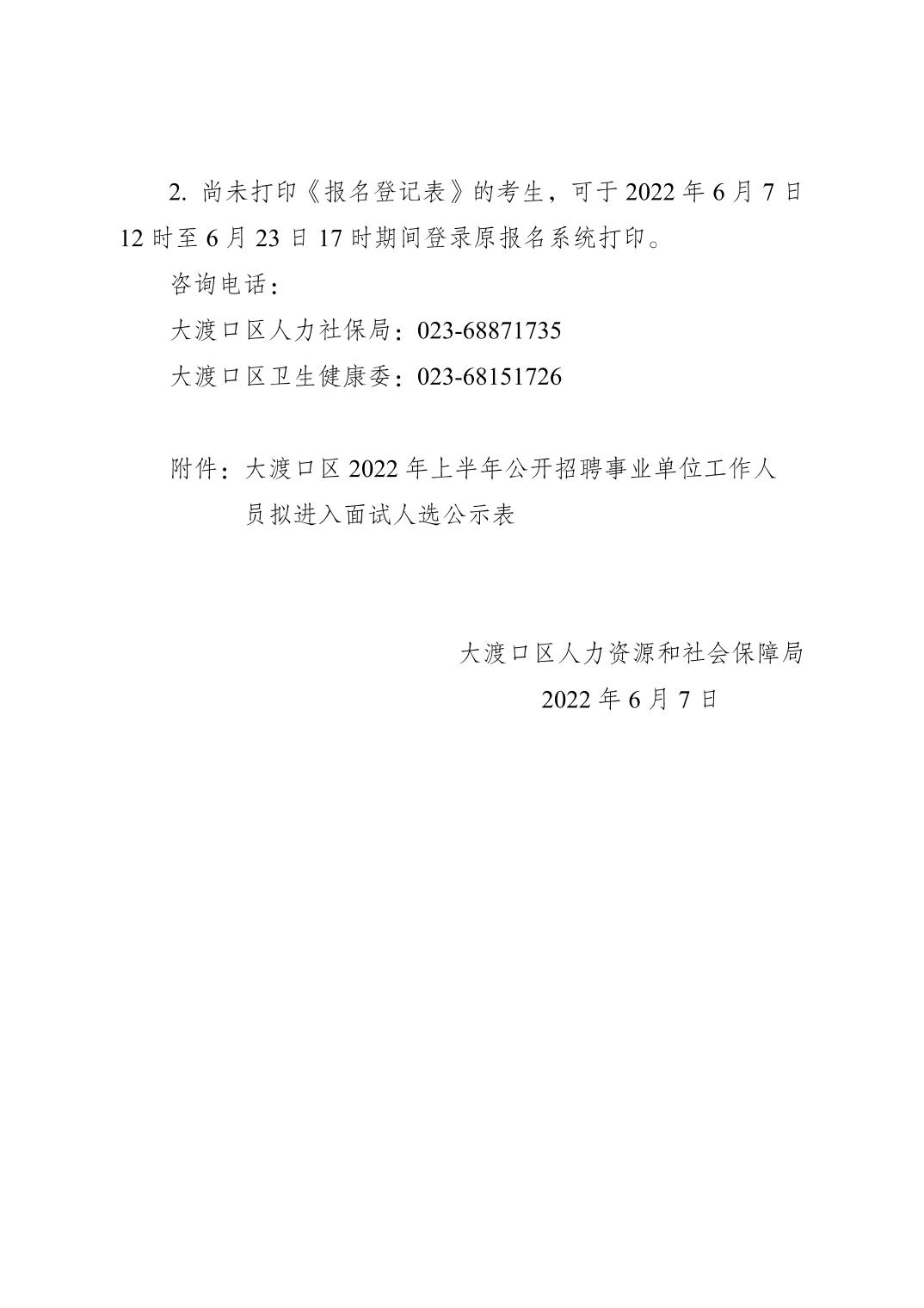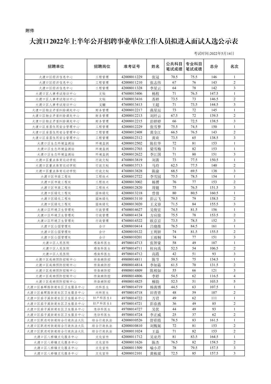 大渡口2022年上半年公開招聘事業單位工作人員擬進入面試人選公示表.pdf
