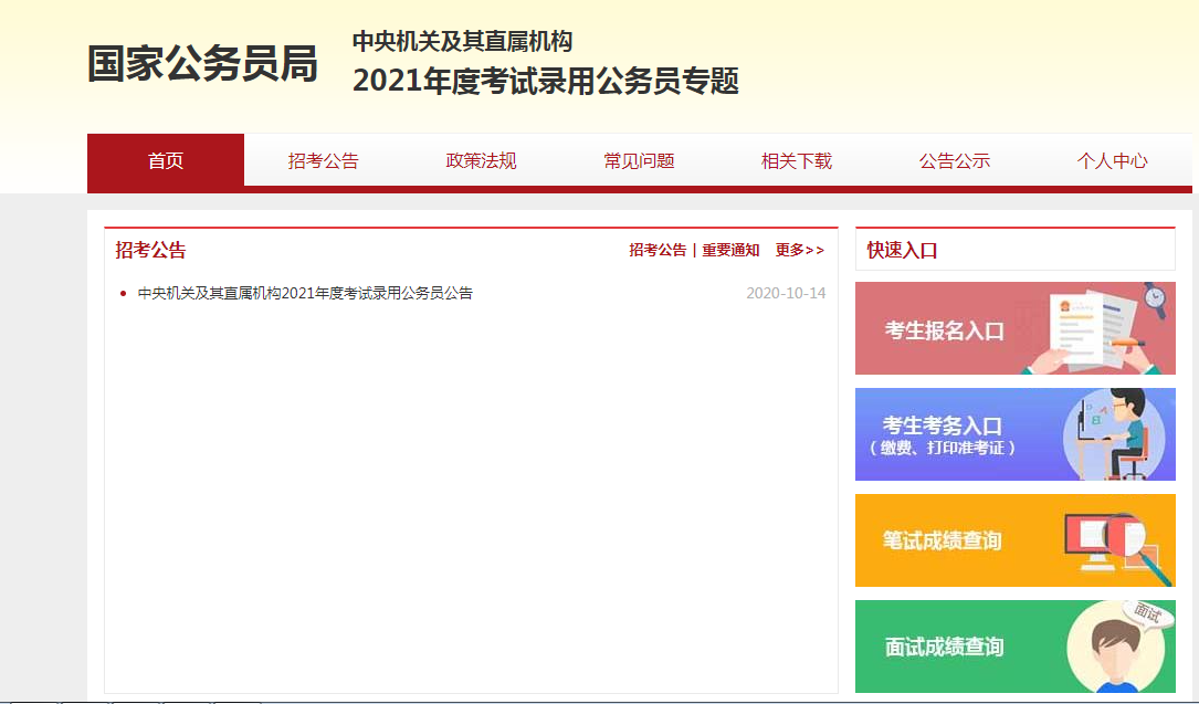 【導語】2021年國家公務(wù)員考試報名入口現(xiàn)已發(fā)布,新公教育 為廣大考生整理此次公告內(nèi)容如下,望各位考生及時查看切勿錯過報名時間。新公教 育為報考重慶事業(yè)單位考生提供備考資料、輔導用書、真題講義、筆試課程等內(nèi)容, 歡迎各位考生加入備考QQ群 931762566一起學習!