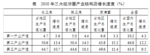 三大經濟圈中,2010年三次產業增長速度均超過全國平均水平的有幾個?