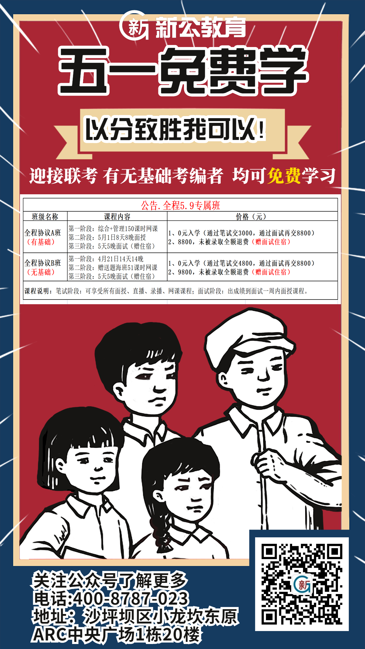 新公教育為你提供更多考試資訊和招聘公告可關(guān)注微信公眾號【新公教育(cqxgjy)】查看!